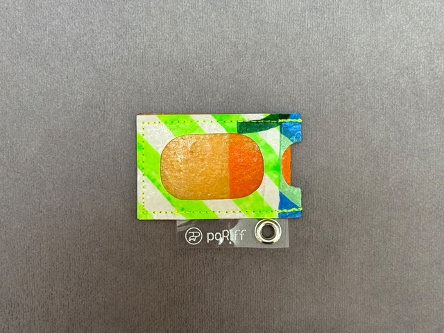 【poRiff_ミニホルダー】 定価¥1,320 レジ袋から生まれたこのキーホルダーは、 お気に入りの写真や切符などを入れるのにおススメです! ご家族、ペットの写真など入れてみてはいかがでしょうか? 推し活としてもご利用ください* 証明写真程度の大きさなら入ります。 カバンなどにつけてファッションアイテムとしてご利用ください。 ■ カラー/サイズ/バリエーション ・全て1点物のデザインとなります。 ・サイズは横6cm、縦4cm(円2.5×4cm) ※すべて手作業のため大きさに多少のズレはございます。 ■ 素材/製造国 ・再生レジ袋を使用しており、環境にも優しく濡れても大丈夫です。 ・大阪にある就労継続支援B型事業所で障がいを抱える方の仕事としてすべて手作業で 作られています。 ■ お手入れ/取り扱い注意事項 ・汚れた際は濡れたタオルなどでふき取ってください。 ・高温のアイロンなど、熱を加えると変形いたします。 ・日光が当たる場所に長期間置いておくと傷む恐れがあります。 ■ 発送・注文に関する情報や注意事項 ・毎週水曜日に発送いたします。 ・配送が遅れる場合がありますので、予めご了承ください。 ■ その他の情報や注意事項 ・商品の特性上、使用感に個体差があります。 ・色合いやデザインはお使いのモニターによって異なる場合がございます。 製品に関するご質問やご不明点がございましたら、ぜひショップのお問い合わせからお気軽にお尋ねください。