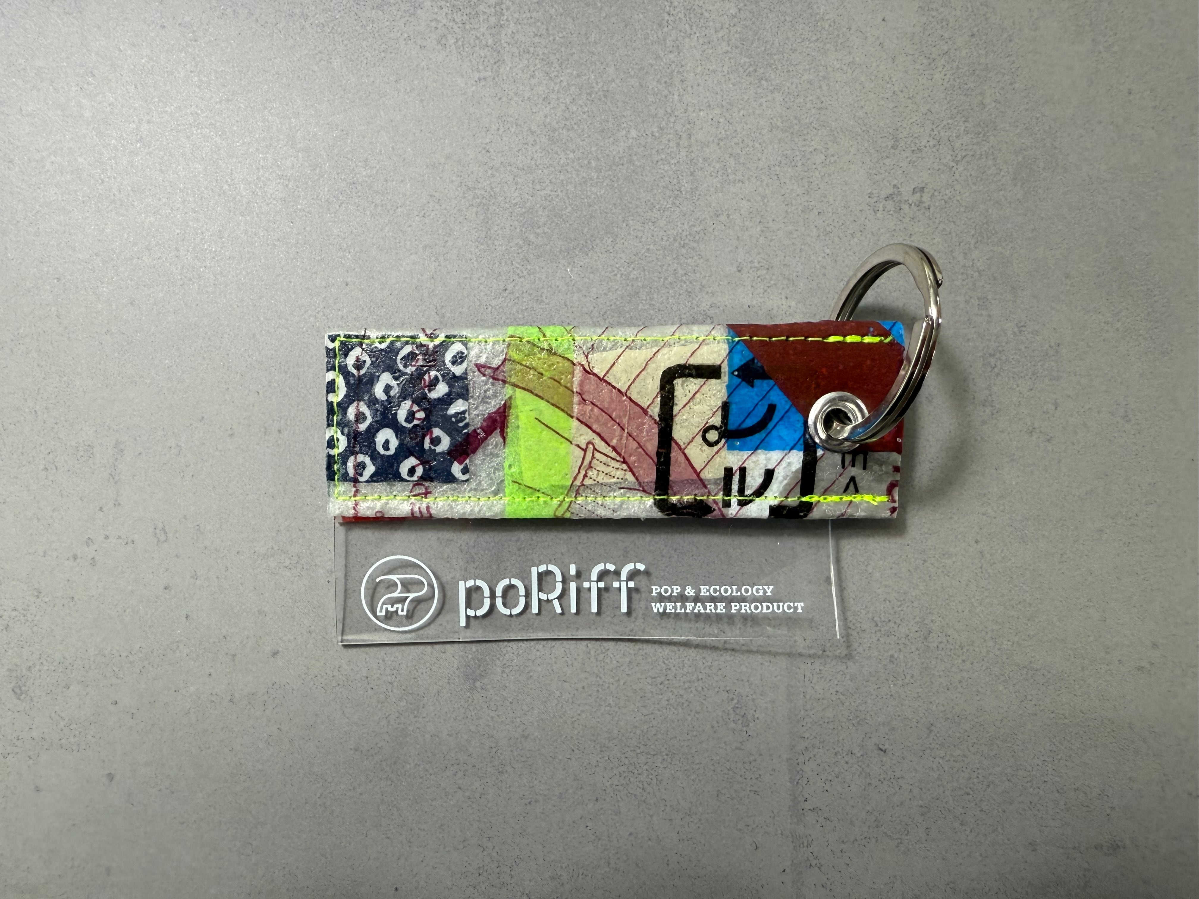 レジ袋から生まれたこのキーホルダーは、ワンポイントアイテムとして色々なものに付ける事ができます。ひとつひとつ違うデザインなのでお楽しみください。プレゼントにもオススメです!