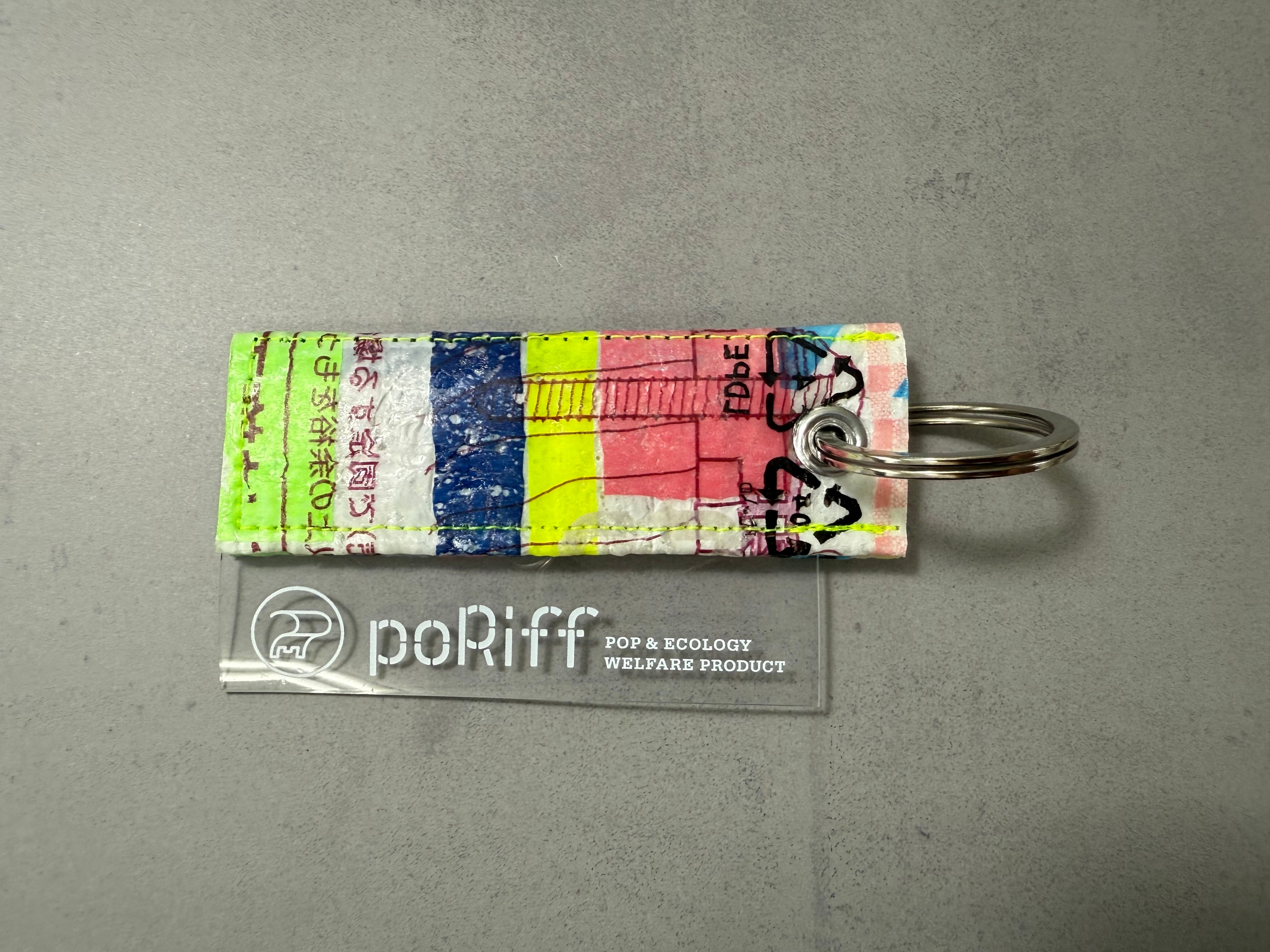 レジ袋から生まれたこのキーホルダーは、ワンポイントアイテムとして色々なものに付ける事ができます。ひとつひとつ違うデザインなのでお楽しみください。プレゼントにもオススメです!