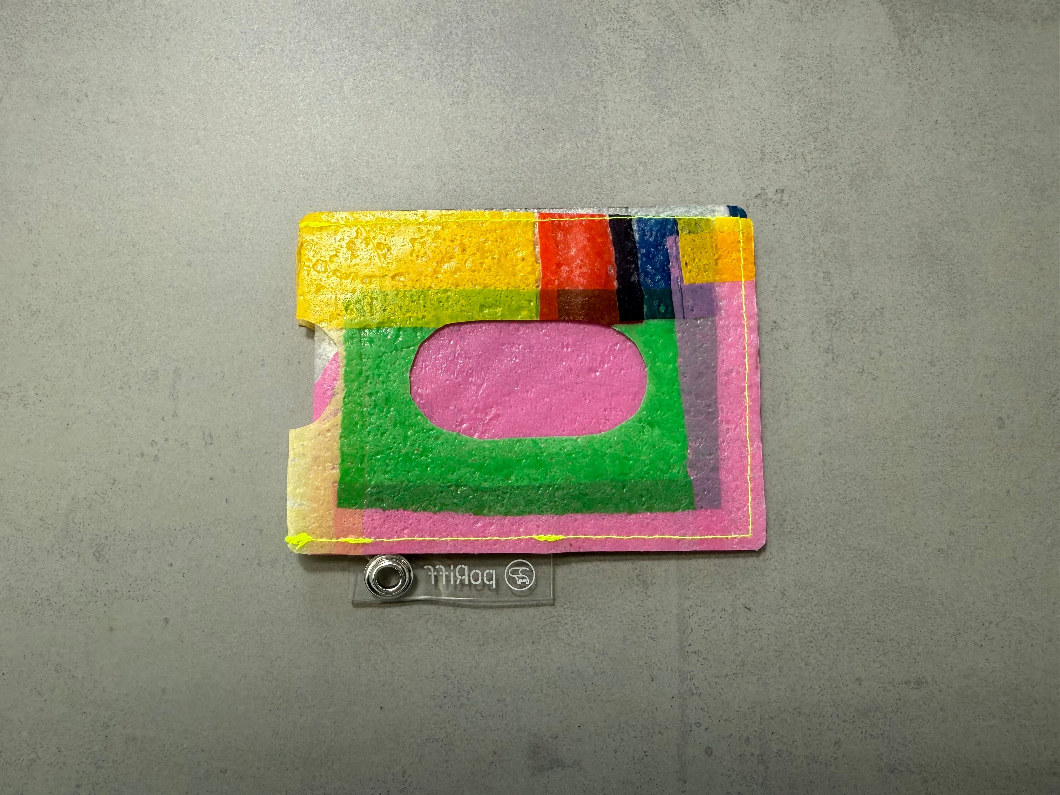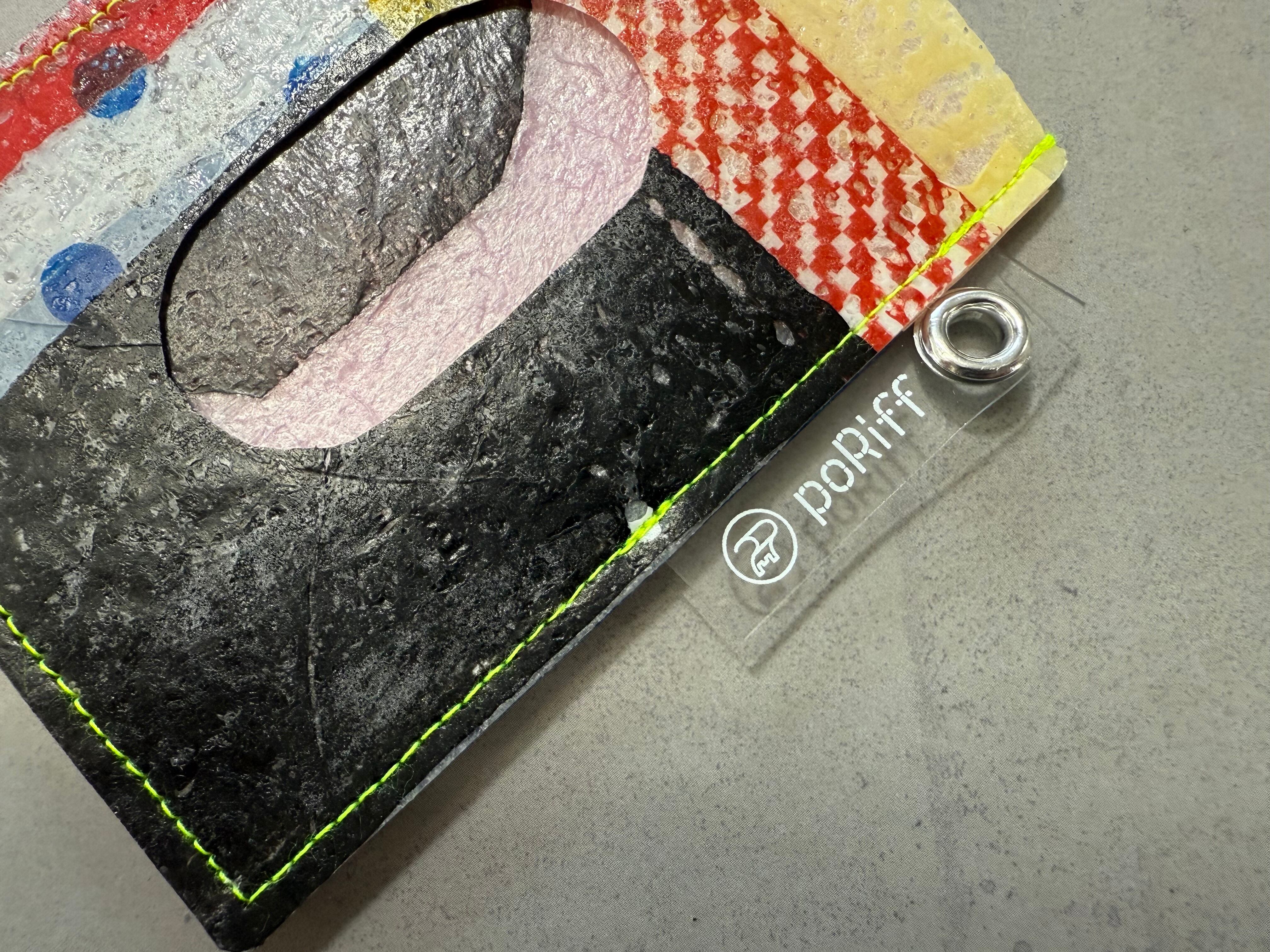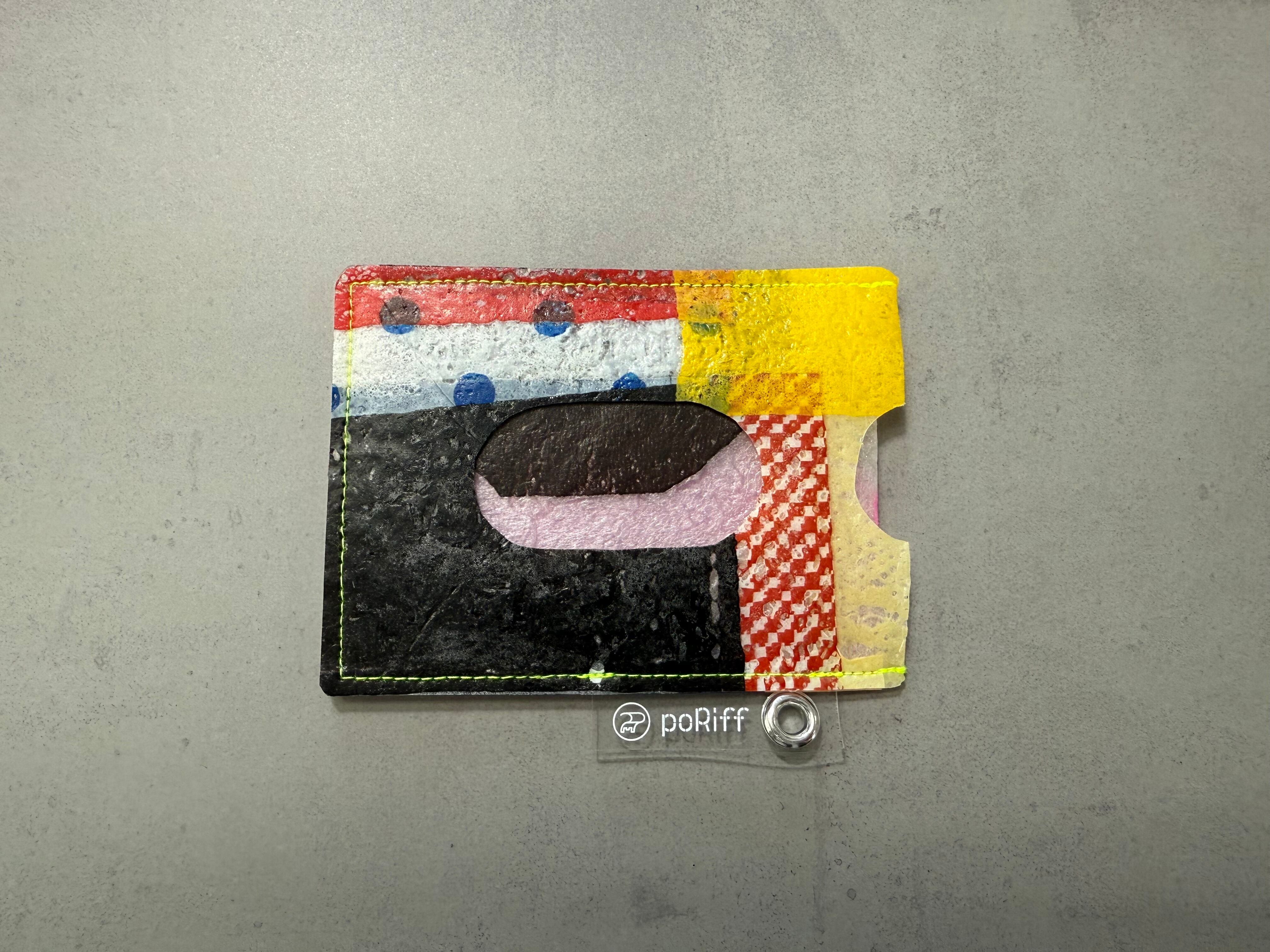 レジ袋から生まれたこのパスケースは、両面にカードを入れることができ、