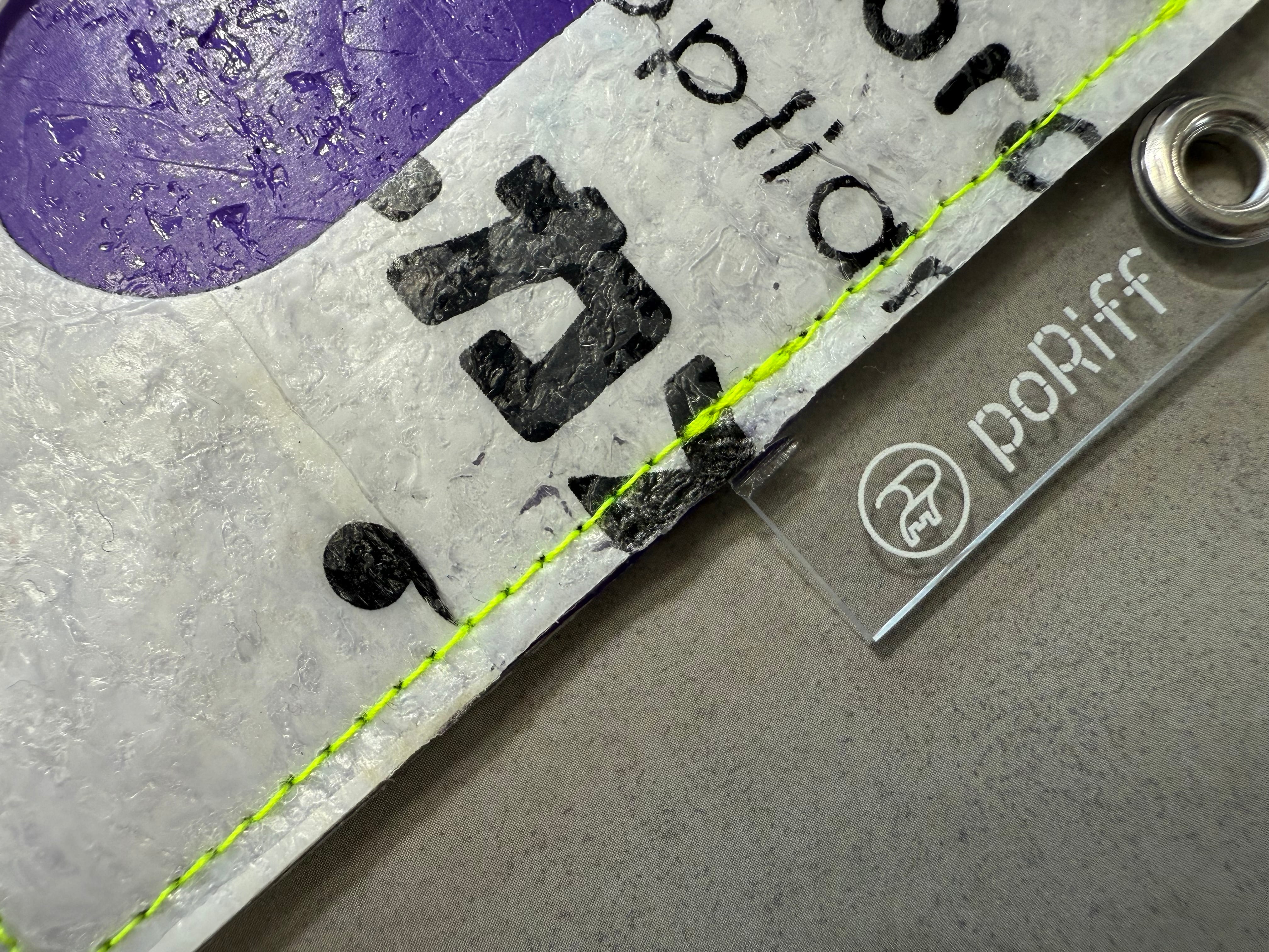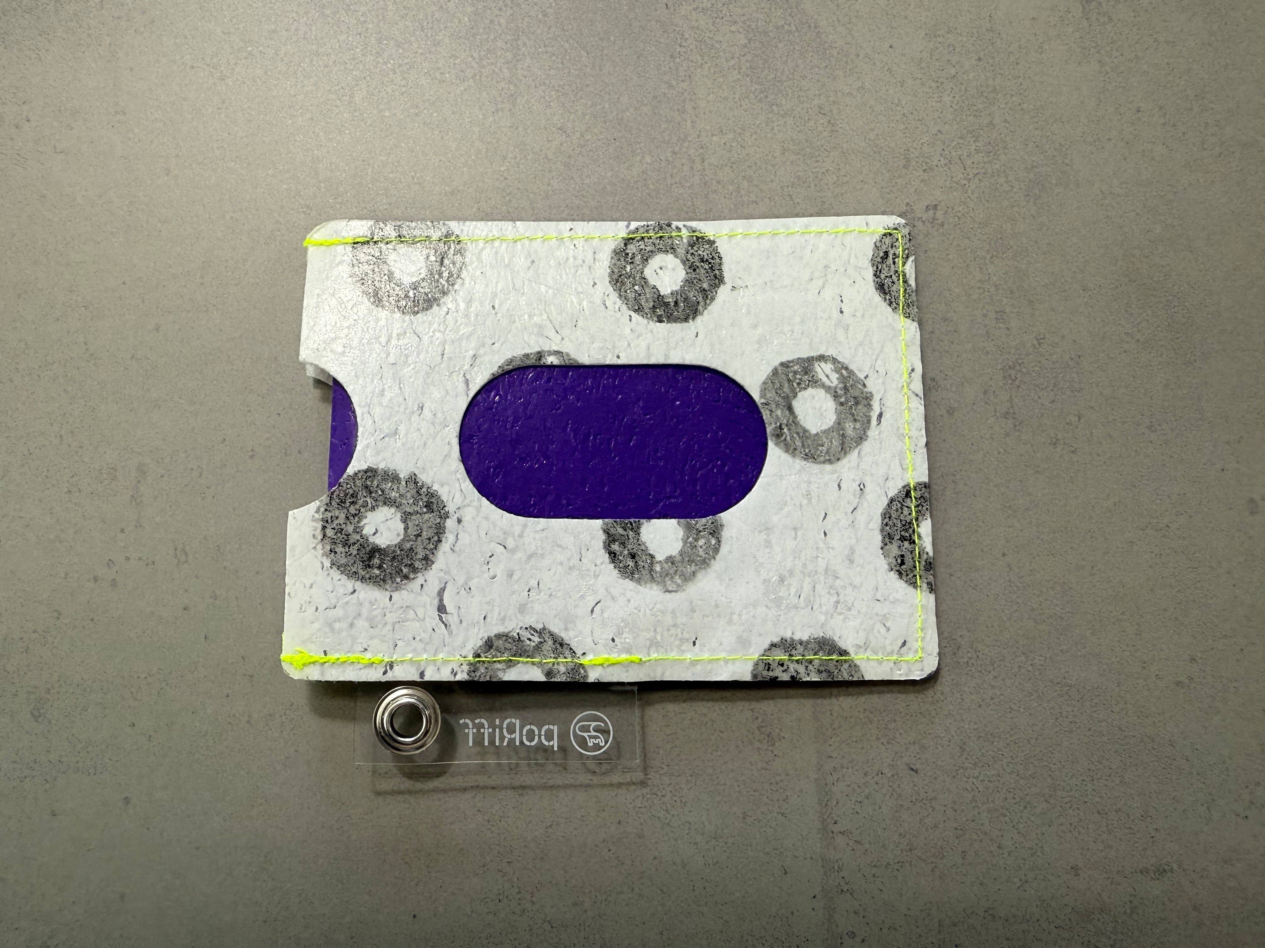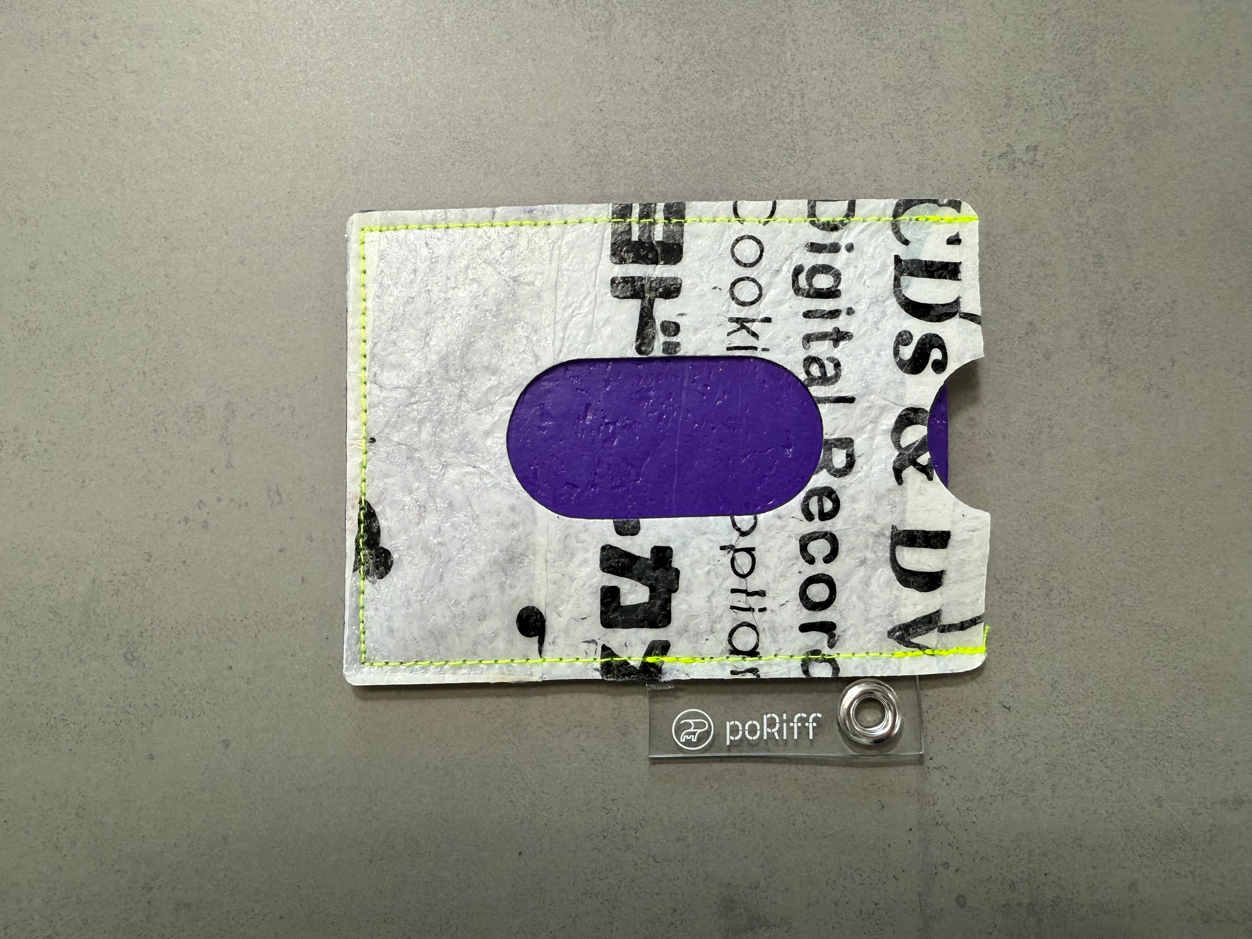 レジ袋から生まれたこのパスケースは、両面にカードを入れることができ、