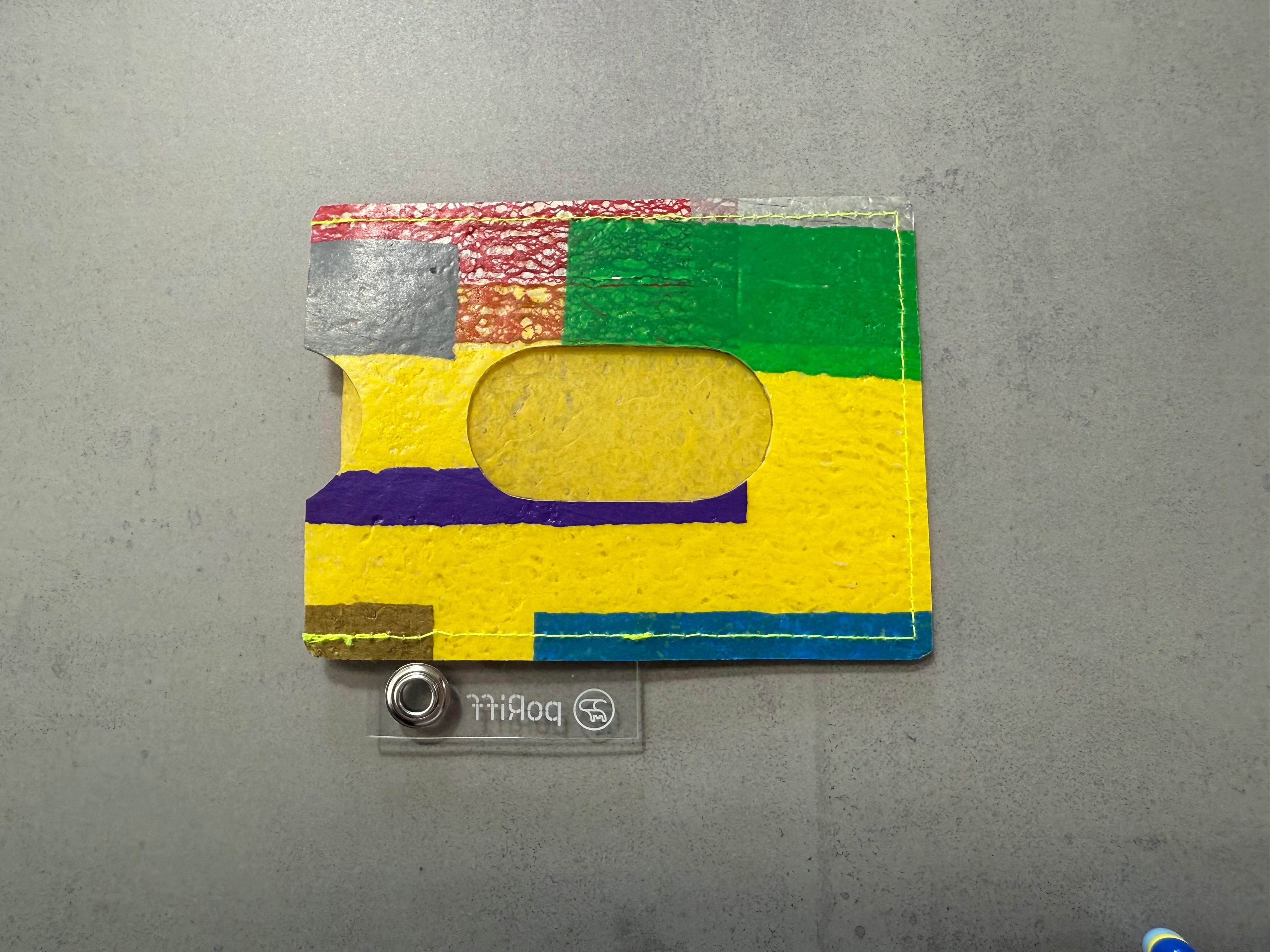 レジ袋から生まれたこのパスケースは、両面にカードを入れることができ、