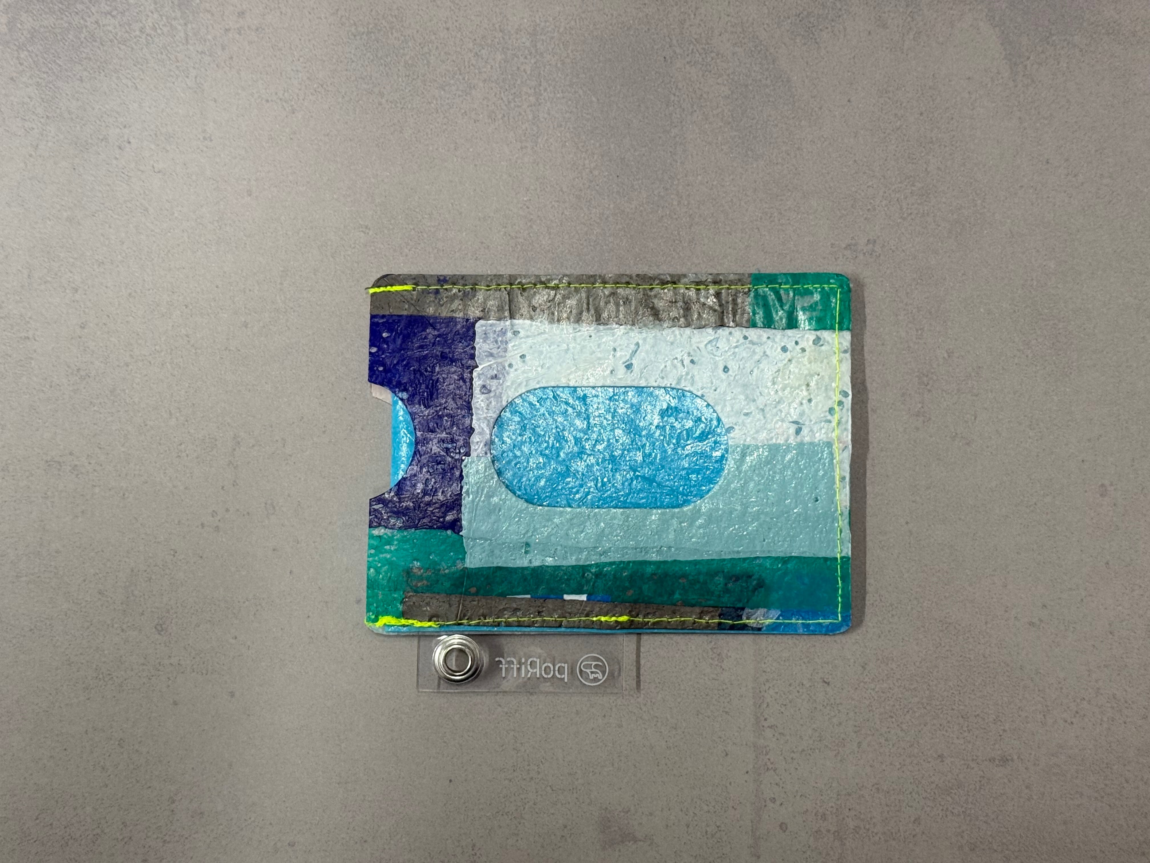レジ袋から生まれたこのパスケースは、両面にカードを入れることができ、